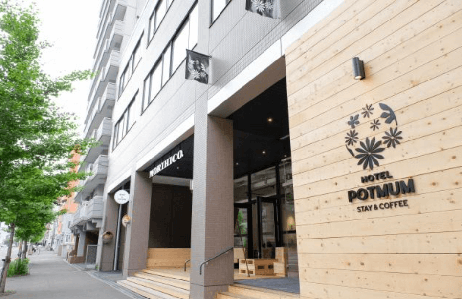 「ホテル ポットマム」は、札幌市白石区の菊水にあるビジネスホテルです。ビルを一棟丸ごとリノベーションしており、内装は木の温もりを感じさせてくれる造りとなっています。ホテルの1階には、自家焙煎のコーヒーが有名なカフェ・MORIHICO.が併設。おいしいコーヒーと、道産食材を使用した食事を楽しめますよ。