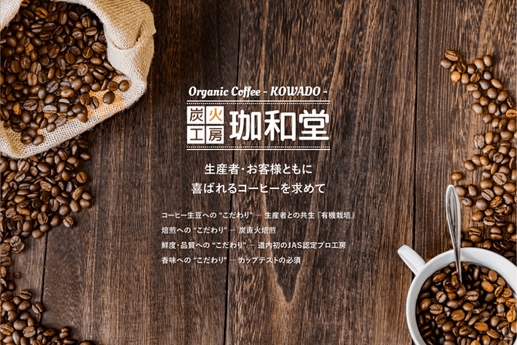 「炭火工房 珈和堂」は、北海道内で初めて有機JAS認定を受けた、有機栽培コーヒー専門の炭直火自家焙煎店です。