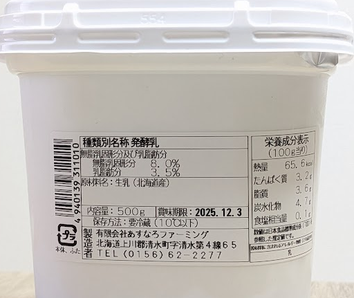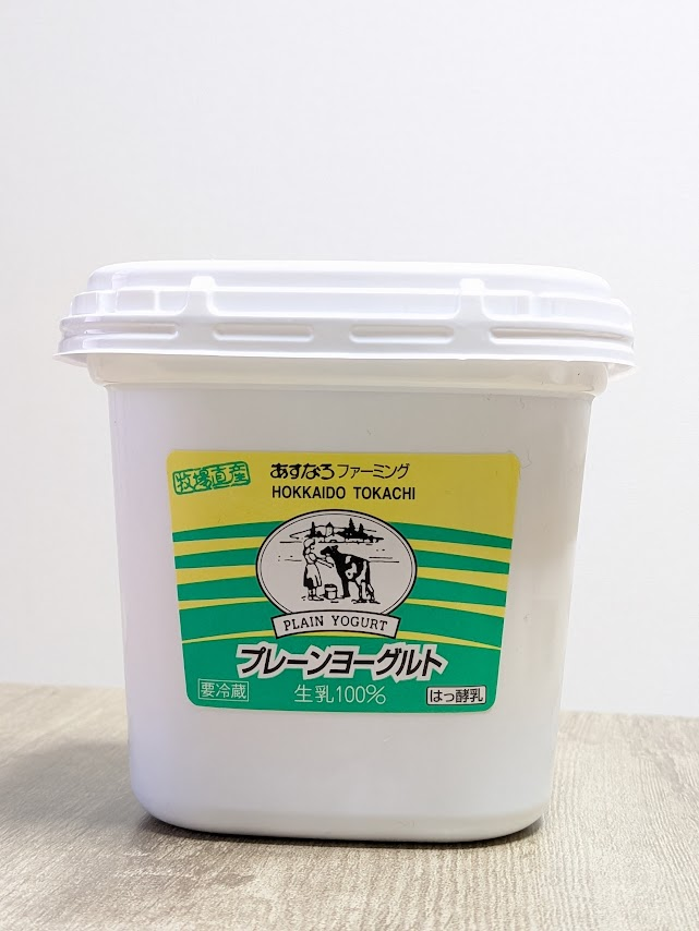 北海道・十勝の大地と、農薬や化学肥料を使わず育てられた牛たちの生乳100%のヨーグルトである、あすなろファーミングのプレーンヨーグルト。